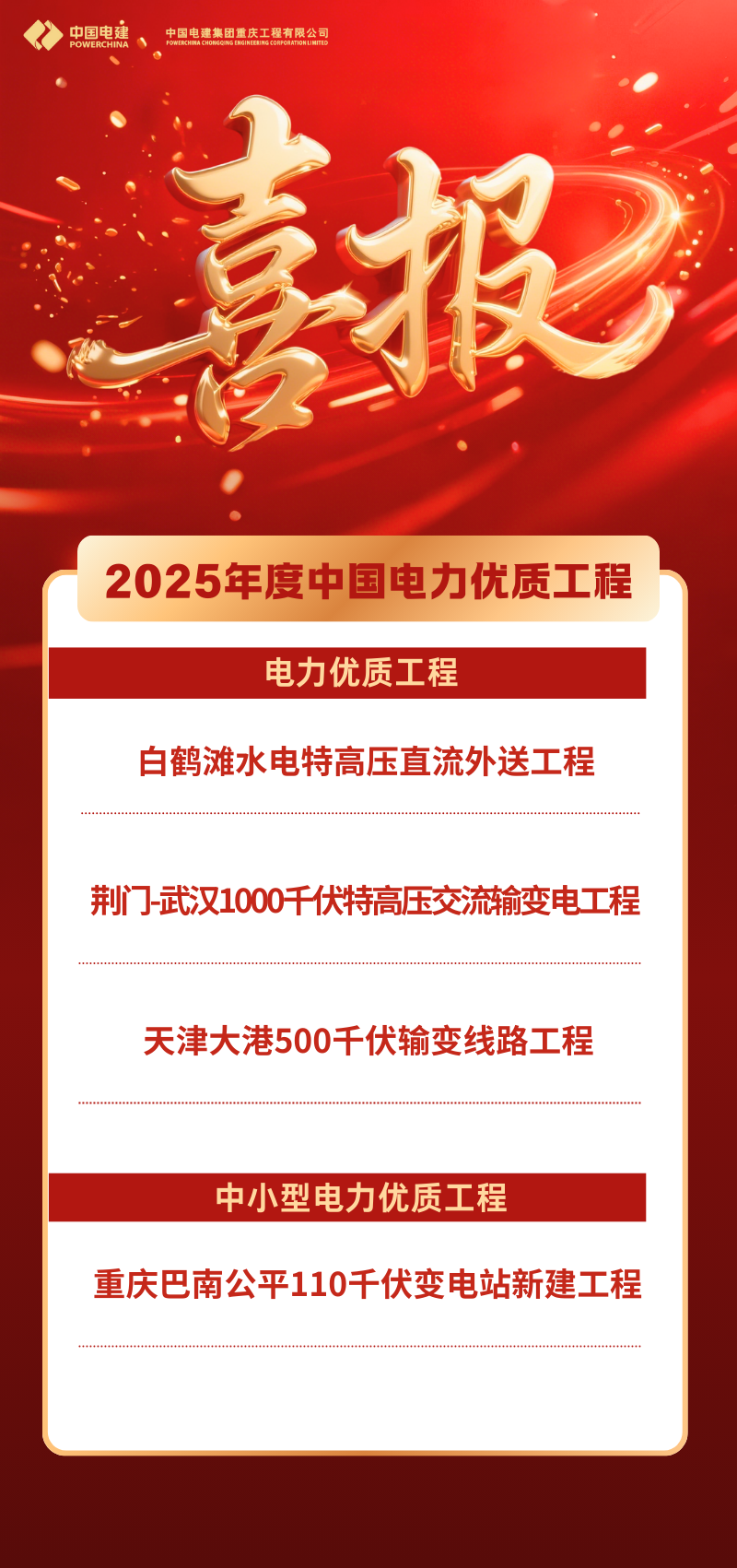 • 重慶電建四個項目獲評“中國電力優(yōu)質(zhì)工...